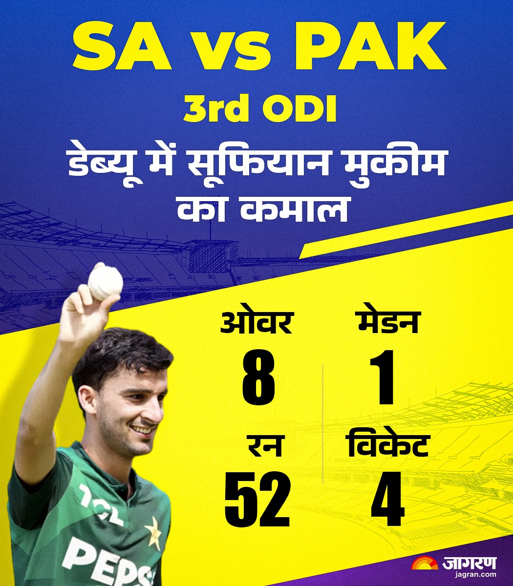 स्पोर्ट्स डेस्क, नई दिल्ली। पाकिस्तान क्रिकेट टीम ने रविवार रात को खेले गए तीसरे वनडे मैच में मेजबान साउथ अफ्रीका को डकवर्थ लुइस नियम के तहत 36 रनों से हरा मैच अपने नाम किया। इसी के साथ पाकिस्तान ने तीन मैचों की सीरीज 3-0 से अपने नाम करते हुए इतिहास रच दिया। वांडरर्स स्टेडियम में खेले गए मैच में पाकिस्तान ने सइम अयूब की बेहतरीन बल्लेबाजी के बाद सूफियान मुकीम की शानदार गेंदबाजी के दम पर ये जीत हासिल की। ये पहली बार है जब साउथ अफ्रीका को किसी टीम ने उसके ही घर में द्विपक्षीय वनडे सीरीज में क्लीन स्वीप किया है।