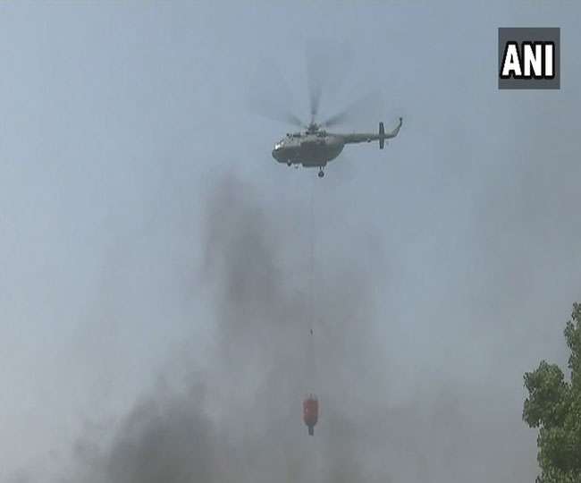 मंगलवार शाम आग लगने के बाद डीएम ने आधी रात में वायुसेना से हेलीकॉप्टर की मांग की थी। रात में हेलीकॉप्टर का संचालन नहीं होने के कारण अधिकारियों ने सुबह प्रबंध करने का भरोसा दिया। बुधवार सुबह सहारनपुर से वायुसेना का हेलीकॉप्टर पालम लाया गया। बाद में यमुना जलाशय से बांबी बकेट से पानी भरकर गोदाम में लगी आग पर डाला गया। ऊंची इमारतों, पेड़ और हाईटेंशन तारों से बचाते हुए बांबी बकेट को घटनास्थल तक ले जाना था। ज्यादा धुएं के कारण यह पता लगाने में परेशानी हुई कि पानी डाला कहां जाए। यमुना जलाशय को भी ढूंढ़ने में दिक्कत आई। बांबी बकेट लगी होने के कारण पहले ज्यादा ऊंचाई पर हेलीकॉप्टर को उड़ाया गया फिर घटनास्थल पर धीरे-धीरे नीचे लाकर पानी गिराया गया। कम ऊंचाई पर धुआं और पक्षियों के टकराने के डर के बीच प्रशिक्षण कर्मियों ने सफलतापूर्वक कार्य को अंजाम दिया।
