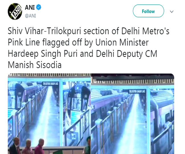 नई दिल्ली, जेएनएन। दिल्ली-एनसीआर के लाखों लोगों को बुधवार को एक और मेट्रो रूट शिव विहार- त्रिलोकपुरी का तोहफा मिल गया है।बुधवार सुबह केंद्रीय मंत्री हरदीप सिंह पुरी और दिल्ली के उपमुख्यमंत्री मनीष सिसोदिया ने मेट्रो भवन से इस रूट को झंडी दिखाई। उद्घाटन के बाद दोपहर दो बजे चली मेट्रो में भाजपा के प्रदेश अध्यक्ष मनोज तिवारी ने भी अन्य यात्रियों साथ सफर किया।