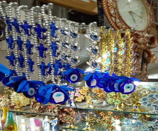 माना जाता है कि घर या दुकानों में 'ईवल आई' टंगी हो तो बुरी नजरों का असर नहीं होता है। दीपावली के नजदीक आने के साथ ही बाजार उपहार सामग्री (गिफ्ट आइटम) से सज गए हैं। पुरानी दिल्ली के बाजारों में दिल्ली के साथ दूसरे शहरों से भी लोग खरीदारी करने पहुंच रहे हैं। सदर बाजार में इन दिनों खरीदारी करने आए लोगों की जबर्दस्त भीड़ उमड़ रही है। वहीं गिफ्ट आइटम की दुकानों में तरह-तरह के गिफ्ट खरीदारों को लुभा रहे हैं।