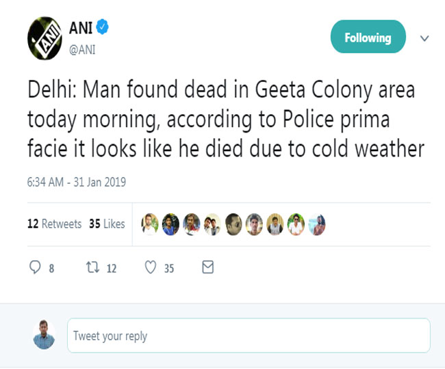 शाहदरा जिला पुलिस उपायुक्त मेघना यादव का कहना है कि शुरुआती जांच में सर्दी से ही मौत लग रही है, लेकिन मौत के सही कारणों का पता पोस्टमार्टम रिपोर्ट आने के बाद लगेगा। पुलिस ने बताया कि गुरुवार सुबह क्लीनिक के पास एक शव होने की सूचना लोगों ने पुलिस को दी।