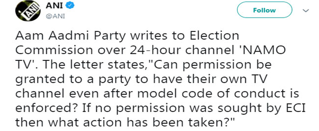 Lok Sabha Election 2019: AAP ने चुनाव आयोग से की 'नमो टीवी' की शिकायत