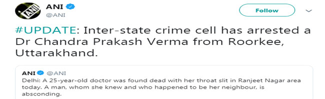 दिल्ली में हुई डॉक्टर गरिमा मिश्रा की हत्या में आरोपित रुड़की से गिरफ्तार