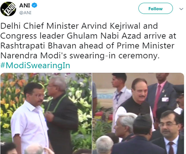 पीएम मोदी के शपथ ग्रहण समारोह में शामिल हुए दिल्ली के सीएम अरविंद केजरीवाल