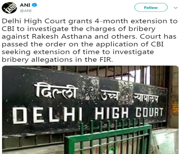 यहां पर बता दें कि सीबीआइ ने अर्जी दायर कर राकेश अस्थाना खिलाफ जांच पूरा करने के लिए 6 महीने का और समय मांगा था। इससे पहले दिल्ली हाईकोर्ट ने रिश्वत के आरोपों पर राकेश अस्थाना के खिलाफ दर्ज एफआईआर रद करने से इनकार कर दिया था। जस्टिस नाजमी वजीरी ने सीबीआई के डिप्टी एसपी देवेंद्र कुमार और कथित बिचौलिये मनोज प्रसाद के खिलाफ दर्ज एफआइआर रद करने से भी मना दिया था।