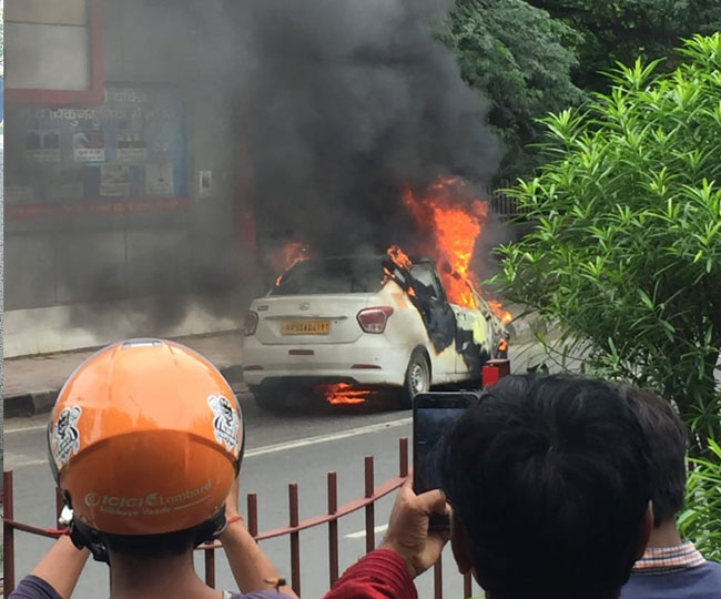 नई दिल्ली: एमबी रोड पर चलती कार में लगी आग, बाल-बाल बचे दो लोग
