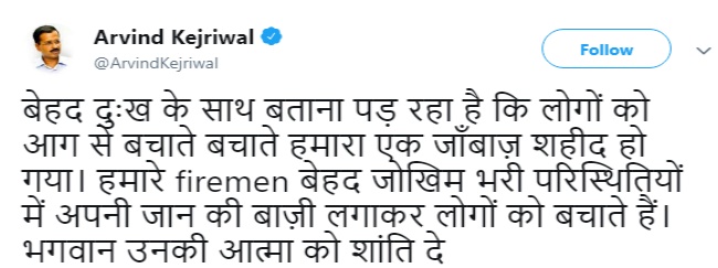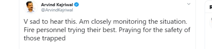 वहीं, आग के इस हादसे पर दिल्ली के सीएम अरविंद केजरीवाल ने ट्वीट कर दुख जताया है।