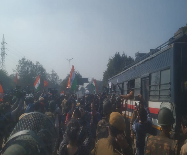 Shaheen Bagh Protest: शाहीन बाग में सड़क खाली कराने पहुंचे लोग, 200 मीटर पहले पुलिस ने रोका, देखें- तस्वीरें