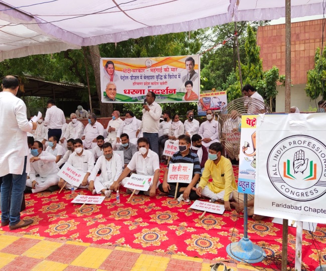 वहीं फरीदाबाद में भी कांग्रेस कार्यकर्ताओं ने प्रदर्शन किया। जिला मुख्यालय सेक्टर 12 के सामने कांग्रेस नेताओं ने धरना दिया और केंद्र सरकार के खिलाफ नारेबाजी करते हुए डीजल और पेट्रोल के दाम करने की मांग की। इस मौके पर कांग्रेस विधायक नीरज शर्मा, पूर्व विधायक ललित नागर, रघुवीर तेवतिया और आनंद कौशिक, प्रदेश कांग्रेस के सचिव बलजीत कौशिक अन्य नेता मौजूद रहे।