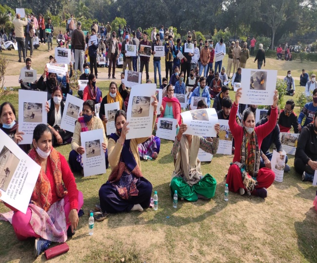 यह विरोध-प्रदर्शन दिल्ली पुलिस महासंघ के बैनर तले था। इसमें राष्ट्र को कलंकित करने वाली ट्रैक्टर परेड के दौरान उपद्रव में जान की बाजी लगाकर सुरक्षा में तैनात रहे पुलिसकर्मियों के साथ उनकी मां, बहन, पत्नी, भाई के साथ मासूम बच्चे भी शामिल थे। राष्ट्रपिता महात्मा गांधी की तस्वीर के साथ पुलिसकर्मियों के स्वजन हाथों में ‘हम किसी के दुश्मन नहीं, हमारा काम है शांति व्यवस्था बनाए रखना और हम हर हाल में वही करते हैं।’ लिखे हुए प्लेकार्ड थे।