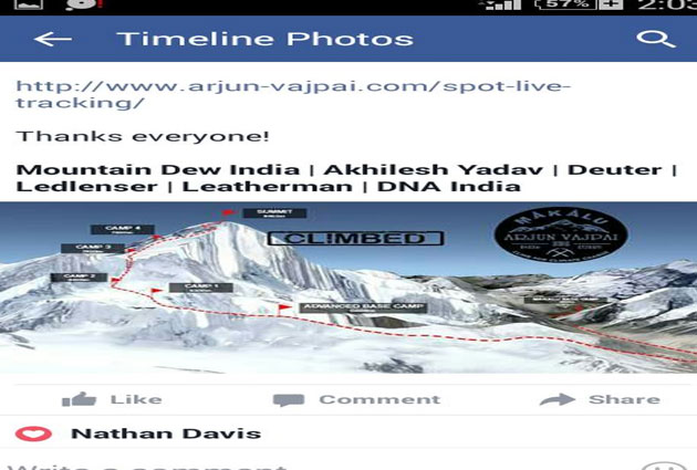 सतर्कता और सुरक्षा के मद्देनजर अर्जुन इस बार जीपीएस से लैस थे। उसी से उनके चोटी पर पहुंचने की पुष्टि हुई है।