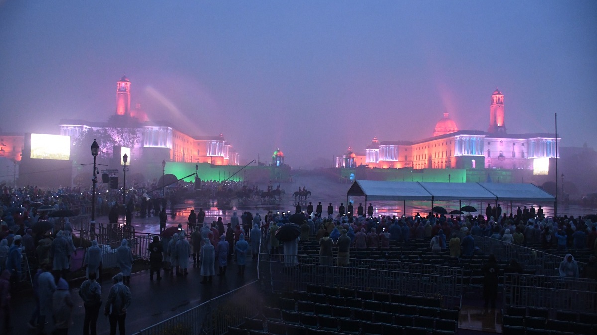 Beating Retreat Photos: 'बीटिंग रिट्रीट' के साथ गणतंत्र दिवस समारोह का समापन, बारिश के चलते नहीं हुआ ड्रोन शो
