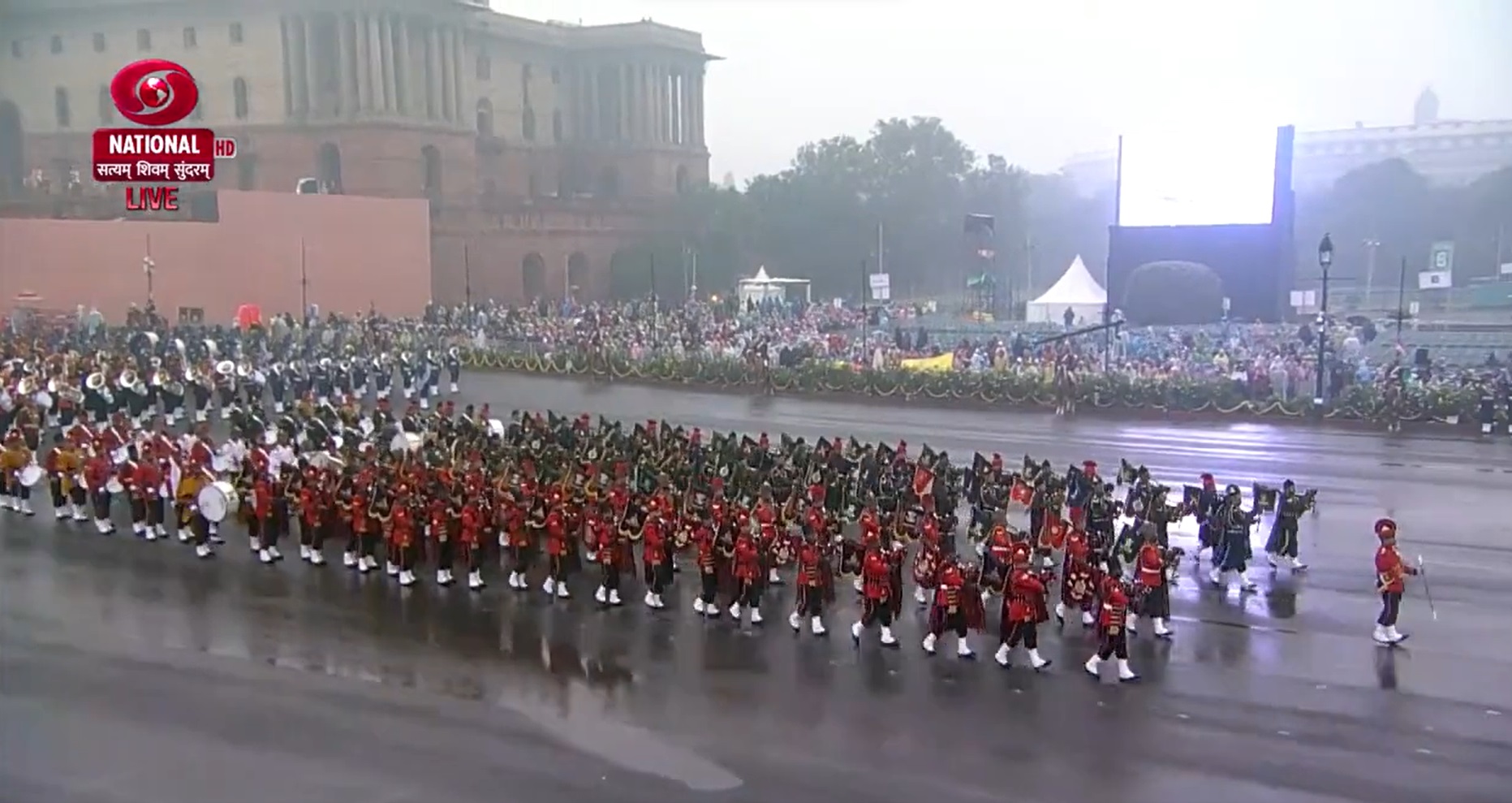 भारतीय वायु सेना (Indian Air Force) के बैंड ने 'अपराजेय अर्जुन', 'चरखा', 'वायु शक्ति', 'स्वदेशी' की धुनें बजाईं, जबकि नौसेना (Indian Navy) के बैंड ने 'एकला चलो रे', 'हम तैयार हैं' और 'जय भारती' की धुनें बजाईं। भारतीय सेना (Indian Army) के बैंड ने 'शंखनाद', 'शेर-ए-जवान', 'भूपाल', 'अग्रणी भारत', 'यंग इंडिया', 'कदम कदम बढ़ाए जा', 'ड्रमर्स कॉल' और 'ऐ मेरे वतन के' की धुन बजाई।