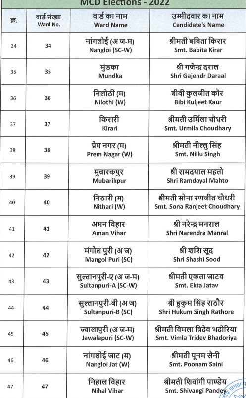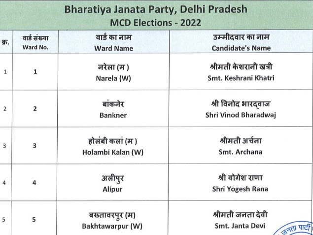 Delhi MCD Election 2022: भाजपा ने नगर निगम चुनाव के लिए जारी की 232 प्रत्याशियों की सूची, देखें पूरी लिस्ट