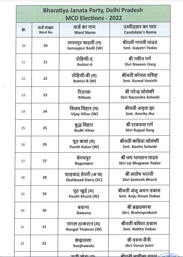 Delhi MCD Election 2022 दिल्ली नगर निगम चुनाव के लिए सभी दलों की तैयारी तेज हैं। आम आदमी पार्टी के बाद अब भाजपा ने अपनी सूची जारी कर दी गई है। भाजपा प ...और पढ़ें