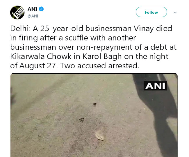 पुलिस ने बताया कि विनय की हत्या किसी दूसरे बिजनेसमैन के साथ हुए विवाद के बाद की गई है। विनय पर पिस्टल से कई बार फायर किया गया है। यह घटना करीब 11 बजे रात के आसपास की है। आर्य समाज रोड मंदिर के पास विनय का घर है वहीं हुई है। इस मामले में पुलिस ने दो लोगों को हिरासत में लिया गया है।