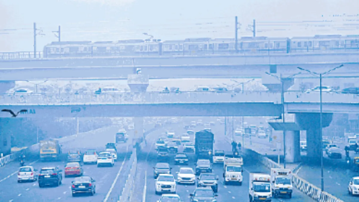 दिल्ली-मेरठ एक्सप्रेसवे पर घने कोहरे में गुजरते वाहन। जागरण