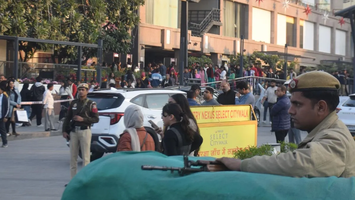 साकेत स्थित नेक्सस सेलेक्ट सिटीवॉक मॉल के बाहर सुरक्षा में तैनात पुलिसकर्मी। जागरण
