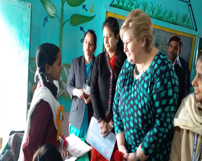 इस दौरान एरना सोलबर्ग ने स्कूली बच्चों की पढ़ाई और उपस्थिति आदि की जांच के लिए बनाए एप दीक्षा की भी जानकारी ली। यूनिसेफ की टीम ने उन्हें दीक्षा के बारे में बताया। साथ ही किस तरह से एप के माध्यम से बच्चों की पढ़ाई, गुणवत्तापूर्ण शिक्षा, बच्चों की उपस्थिति, ड्रॉप आउट बच्चों को स्कूल लाने के प्रयास किए जा रहे हैं, इसकी जानकारी मिल सकेगी।