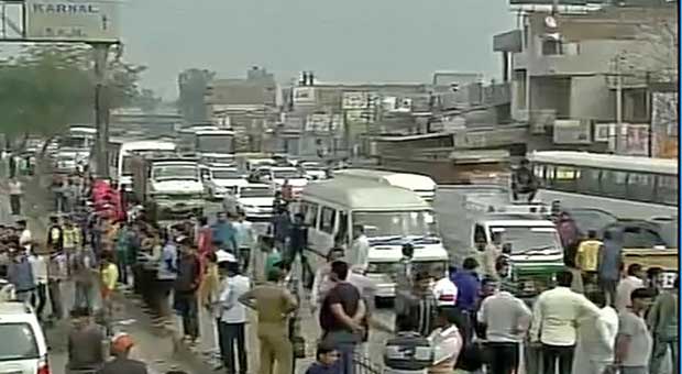 हरियाणा में जाट आरक्षण के आंदोलन के चलते शनिवार को दिल्ली-हरियाणा मार्ग जाम हो गया। शनिवार की सुबह अपनी मांग को लेकर जाट आरक्षण समर्थक इस मार्ग पर धरने पर बैठ गए। इसके चलते यहां को आवागमन पूरी तरह से प्रभावित हो गया। हरियाणा के कई हिस्सों में जाट आरक्षण के समर्थकों ने हिंसात्मक प्रदर्शन किया। बिगड़ती कानून व्यवस्था के बीच इन इलाकों में सेना की तैनाती की गई है। इस बीच बिगड़े हालातों को देखते हुुए हरियाणा के सोनीपत जिले में भी कर्फ्यू लगा दिया गया है।