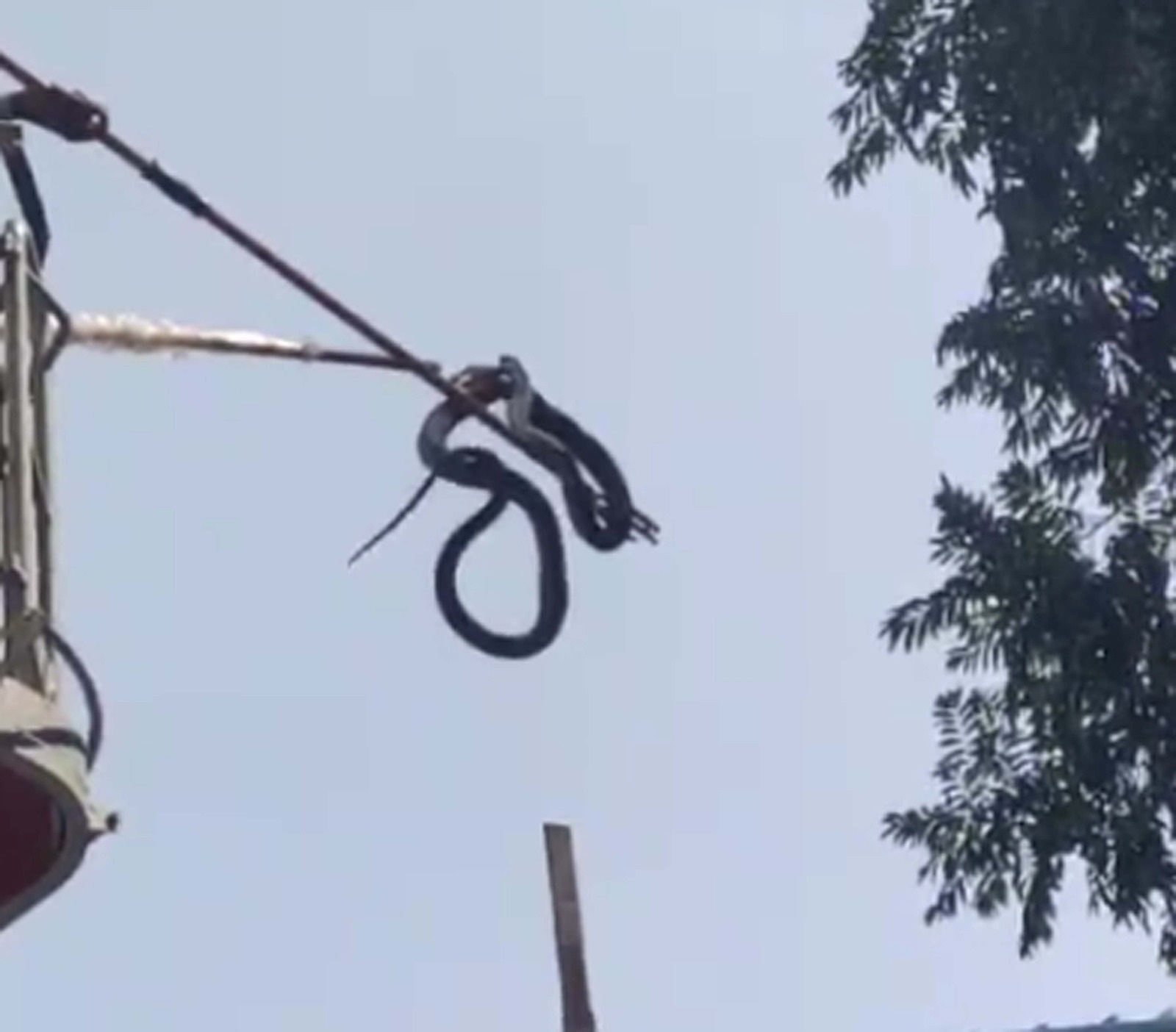लिफ्ट क्रेन के जरिए कोबरा पकड़ा