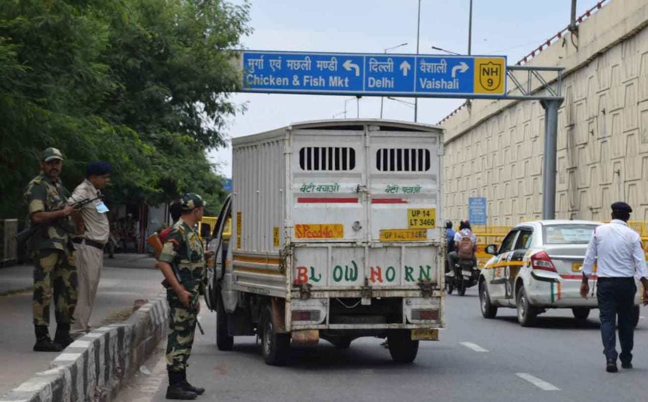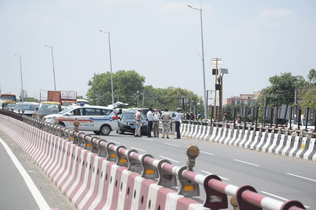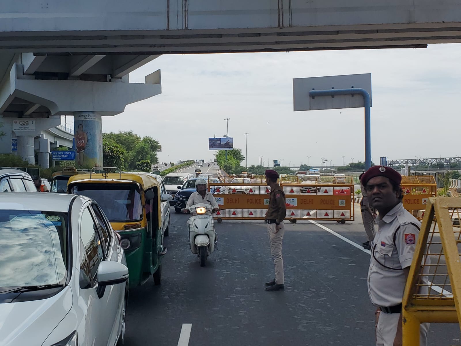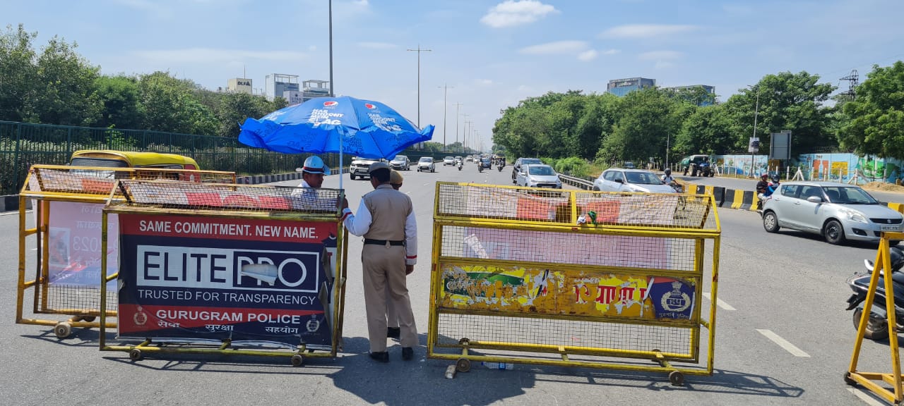 गुरुग्राम में सिग्नेचर टावर के पास एक्सप्रेस-वे पर पुलिस नाका लगाया गया है। इस नाके को पार कर सिर्फ कार और बाइक ही जा सकते हैं, भारी वाहन और ऑटो जाना वर्जित हैं।