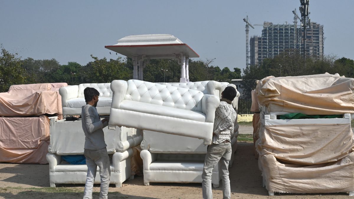 राजधानी में नई सरकार के शपथ ग्रहण समारोह के लिए ऐतिहासिक रामलीला मैदान तैयारियां शुरू हुई। हरीश कुमार