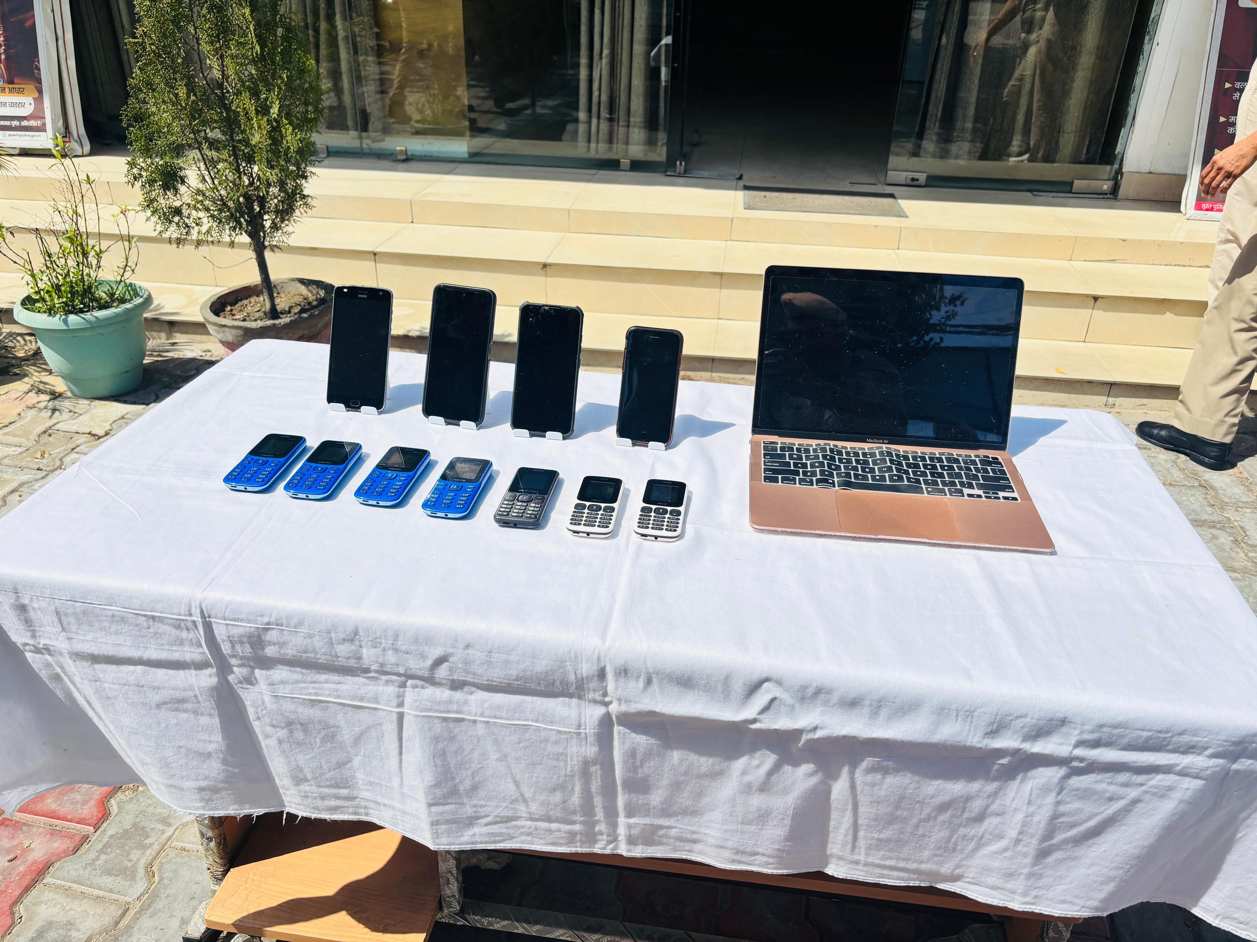 पकड़े गए बदमाशों से वारदात में इस्तेमाल 11 मोबाइल फोन व एक लैपटॉप। सौजन्य दिल्ली पुलिस