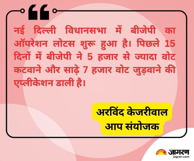 आप संयोजक के अनुसार, भाजपा का "बड़े पैमाने पर अभियान" 15 दिसंबर से शुरू हुआ, जिसमें नई दिल्ली में अब तक 5,000 वोट काटने के लिए आवेदन और 7,500 वोट जुड़वाने के लिए आवेदन दिए गए हैं। बता दें कि केजरीवाल नई दिल्ली विधानसभा क्षेत्र से 2013 से चुनाव जीत रहे हैं।