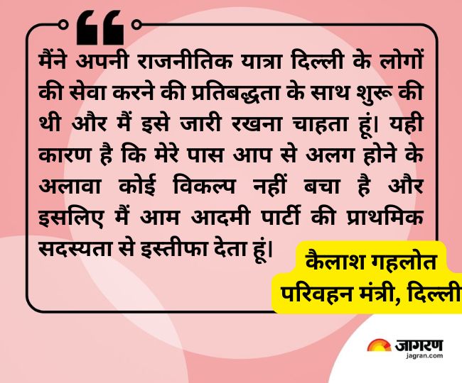 Kailash Gehlot Resigns दिल्ली के परिवहन मंत्री Kailash Gahlot ने रविवार को आम आदमी पार्टी (आप) को बड़ा झटका देते हुए पार्टी से इस्तीफा दे दिया। गहलोत ...और पढ़ें