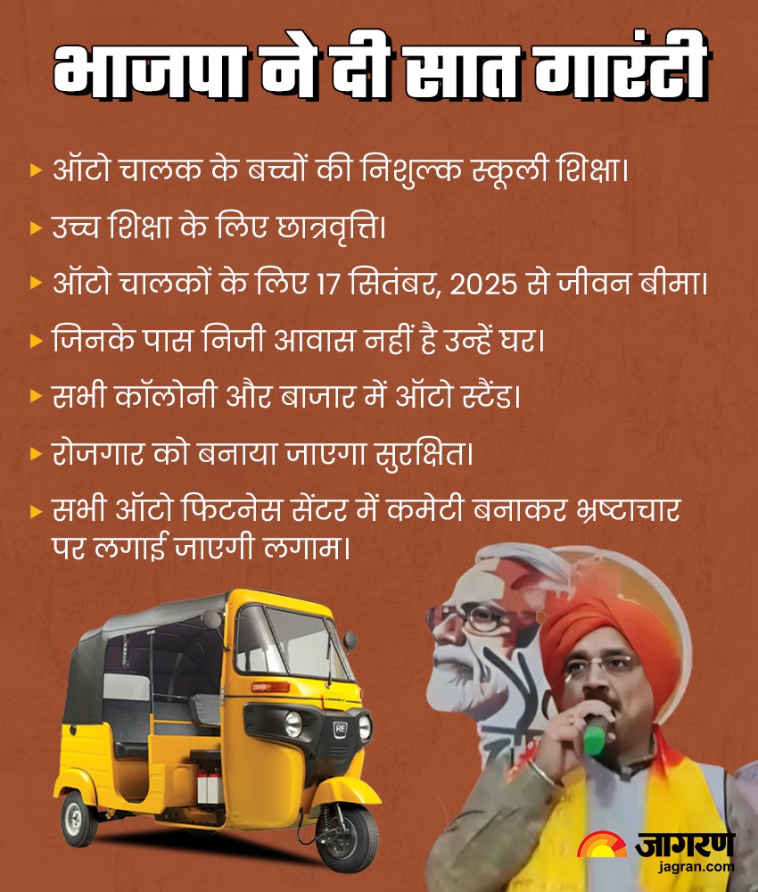 उन्होंने दिल्ली में भाजपा की सरकार बनने पर ऑटो चालकों की समस्याएं दूर करने और जीवन स्तर को बेहतर बनाने की सात गारंटी दी। प्रत्येक लाइसेंस वाले ऑटो चालक के बच्चों की निशुल्क स्कूली शिक्षा व उच्च शिक्षा के लिए छात्रवृत्ति।