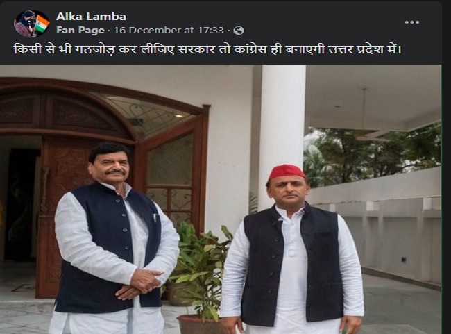 अलका लांबा फैन पेज पर अखिलेश और शिवपाल की फोटो, फेसुबक यूजर भिड़े; कांग्रेस नेत्री ने बोलीं- यह मेरा नहीं
