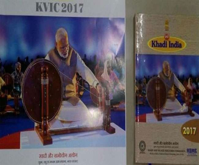 बता दें कि खादी ग्रामोद्योग आयोग (केवीआइसी) की ओर से हर साल प्रकाशित होने वाले कैलेंडर और डायरी में इस साल बार आमूल-चूल बदलाव हुए हैं। खादी के पर्याय कहे जाने वाले बापू वर्ष 2017 के कैलेंडर और डायरी के कवर पर हमेशा की तरह इस बार नहीं दिख रहे हैं। इस साल उनकी जगह प्रधानमंत्री नरेंद्र मोदी ने ले ली है।