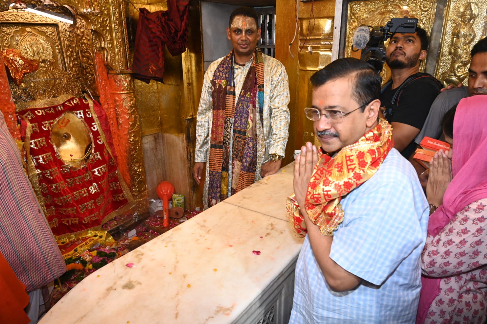 - केजरीवाल ने मंदिर में पूजा-अर्चना की। पुजारी ने दिल्ली सीएम को दिया एक गदा और प्रसाद।