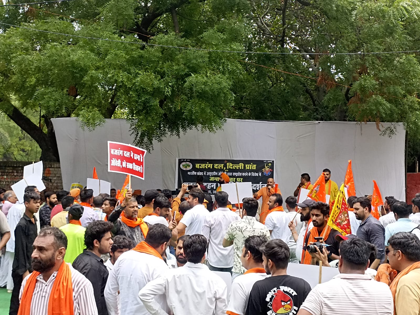 Delhi: संसद में असदुद्दीन ओवैसी के 'जय फिलिस्तीन' बोलने के खिलाफ जंतर-मंतर पर बजरंग दल ने किया विरोध प्रदर्शन। ओवैसी की संसद सदस्यता से अयोग्य करने की मांग। दिल्ली के कई साधु-संत भी शामिल। #DelhiPolice #AsaduddinOwaisi pic.twitter.com/oI667DrAAo