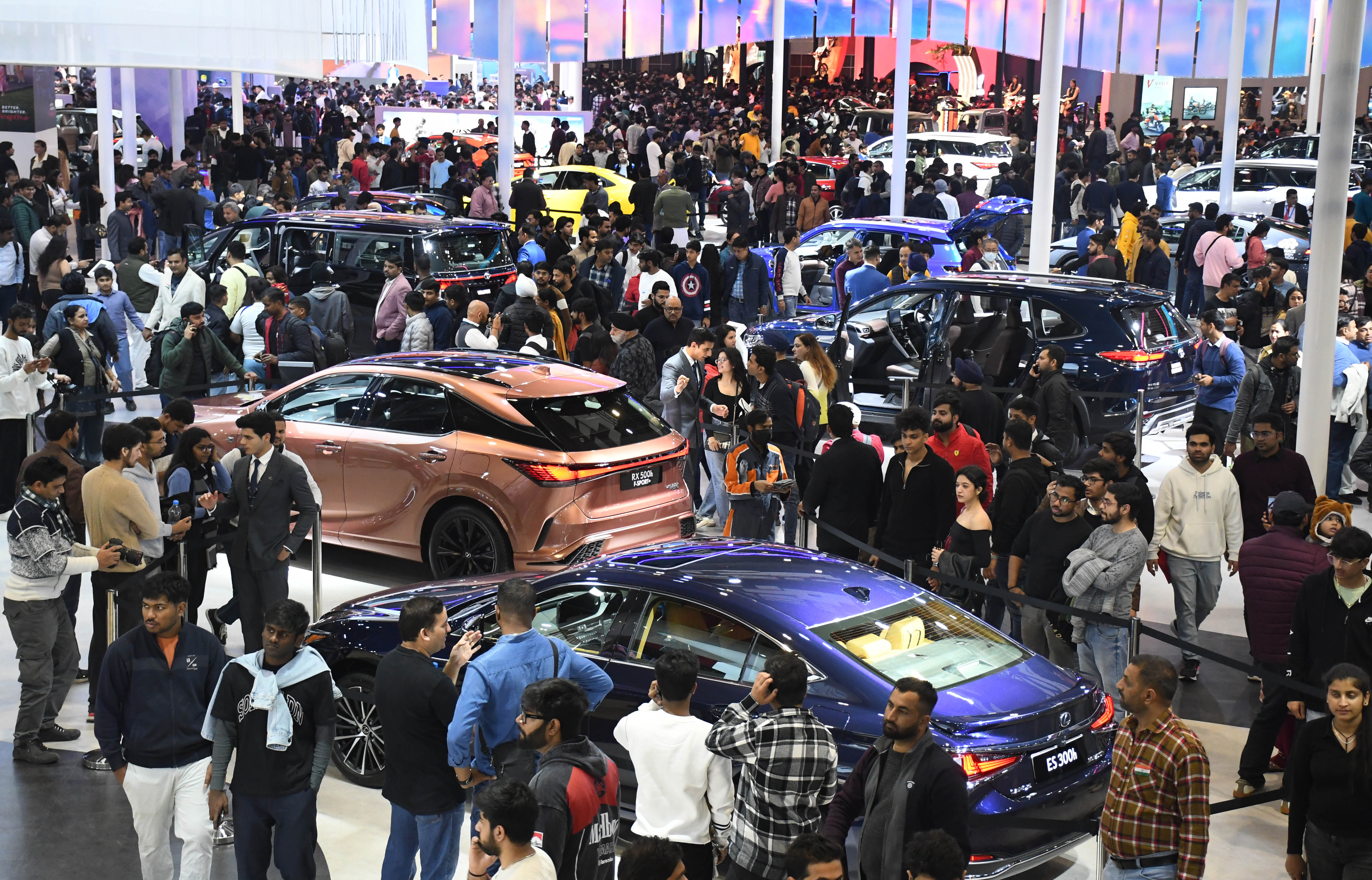 (कोई कार पार्किंग नहीं, ये तो कारों को मेला है। भारत मंडपम में भारत मोबिलिटी ग्लोबल एक्सपो 2025 में विभिन्न प्रकार की कारों को देखने के लिए जुटी दर्शकों की भीड़ का एक नजारा। ध्रुव कुमार)