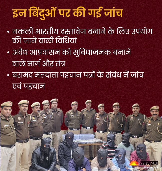 पुलिस ने इस मामले में 12 आरोपितों को गिरफ्तार किया है, जिनमें सात भारतीय नागरिक हैं, इनमें फर्जी दस्तावेज बनाने, आधार आपरेटर, वेबसाइट डेवलपर व एजेंट आदि शामिल हैं। ये भारतीय ही बांग्लादेशी नागरिकों के फर्जी भारतीय दस्तावेज बनवा कर बांग्लादेशी नागरिकों के अवैध आप्रवासन को बढ़ावा दे रहे थे।