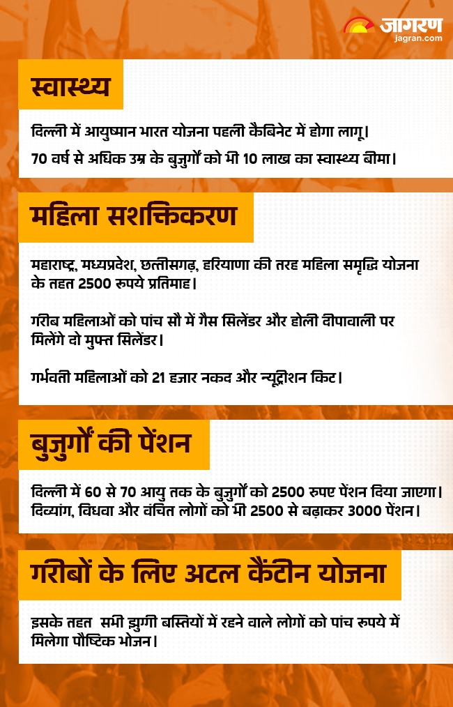 जेपी नड्डा ने कहा कि आपदा पार्टी आयुष्मान भारत योजना से दिल्ली के 51 लाख लोगों को वंचित रखा है। पहली कैबिनेट में इसे लागू किया जाएगा। इसके साथ दिल्ली सरकार की तरफ से पांच लाख का स्वास्थ्य बीमा दिया जाएगी। इस तरह से 10 लाख का स्वास्थ्य बीमा होगा। 70 वर्ष से अधिक उम्र के बुजुर्गों को भी 10 लाख कास्वास्थ बीमा किया जाएगा।