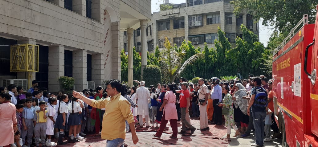 #WATCH | Visuals from Mother Mary's School, Mayur Vihar which received an email this morning regarding a bomb threat. The school is being evacuated and a thorough checking of the school premises is being done. Dog squad and Delhi Police have reached the spot. https://t.co/JymGzBQa4s pic.twitter.com/hI6tygA9Lw