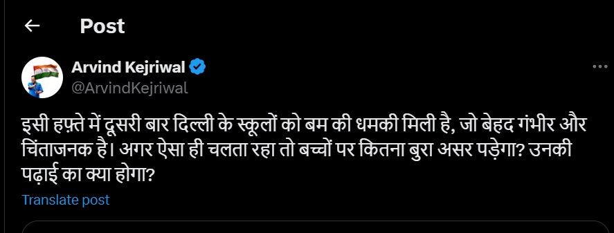 वहीं, पूर्व सीएम अरविंद केजरीवाल ने इस मामले को लेकल अपने एक्स अकाउंट पर एक पोस्ट डाली है। उन्होंने लिखा इसी हफ्ते में दूसरी बार दिल्ली के स्कूलों को बम की धमकी मिली है, जो बेहद गंभीर और चिंताजनक है। अगर ऐसा ही चलता रहा तो बच्चों पर कितना बुरा असर पड़ेगा? उनकी पढ़ाई का क्या होगा?