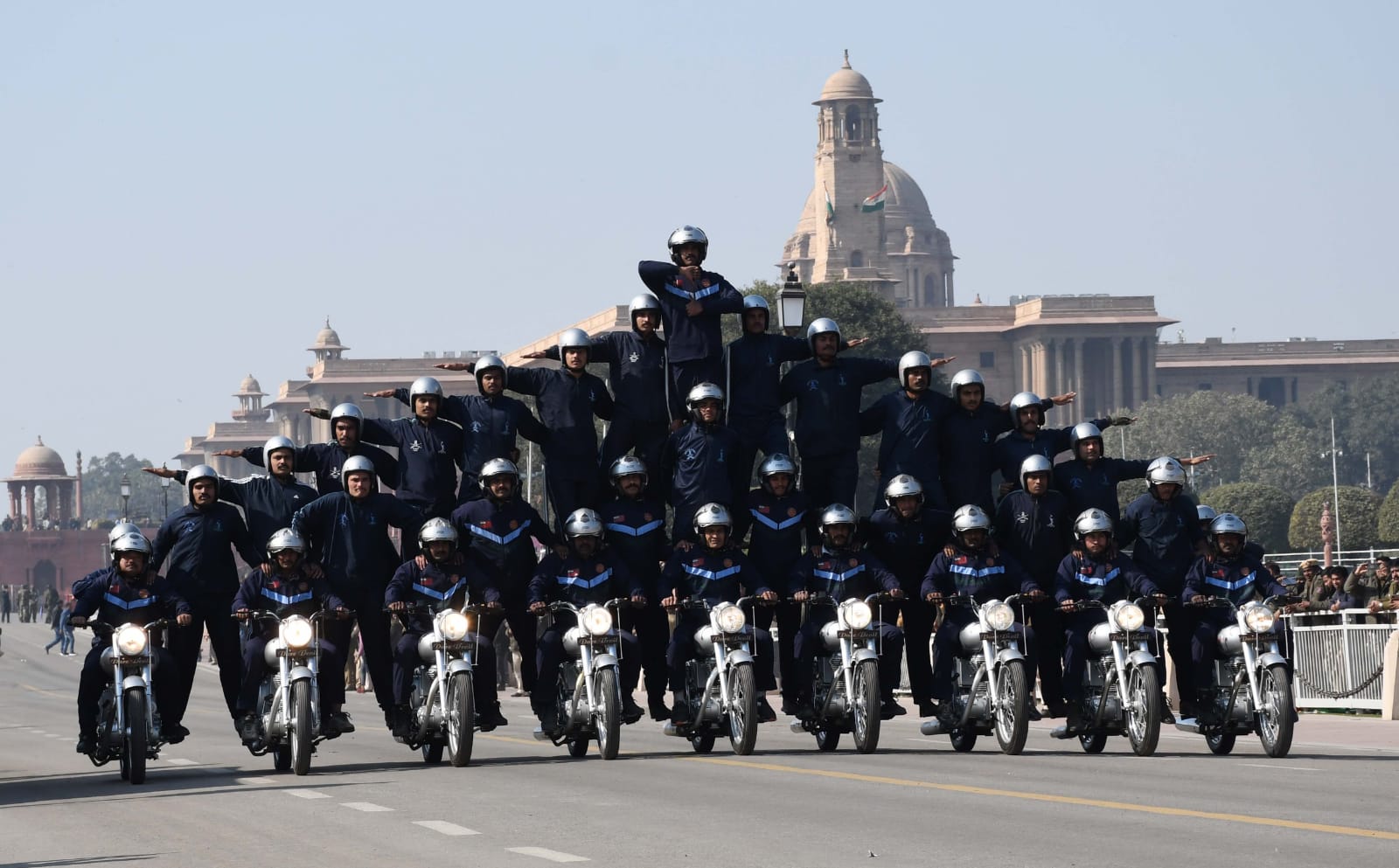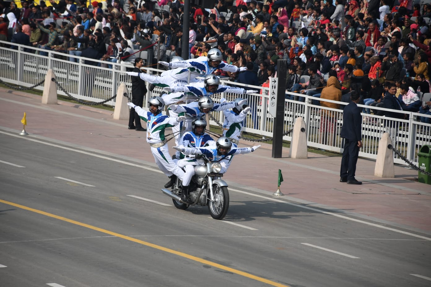Republic Day parade: गणतंत्र दिवस परेड रिहर्सल में जांबाजों ने दिखाए हैरतअंगेज कारनामे, देखें तस्वीरें