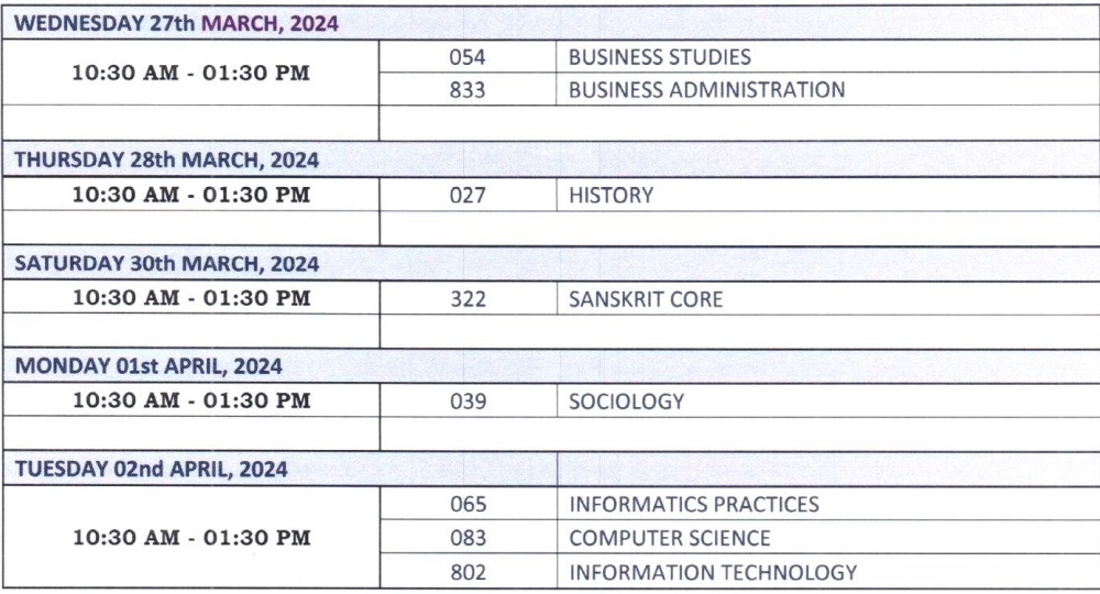 सीबीएसई अधिकारियों ने कहा कि विद्यार्थियों की सुविधा के लिए दो विषयों की परीक्षाओं के बीच में तैयारी के लिए पर्याप्त समय दिया गया है। वहीं, परीक्षाओं की डेटशीट तैयार करते समय प्रतियोगी परीक्षाओं का भी विशेष ध्यान रखा गया है।