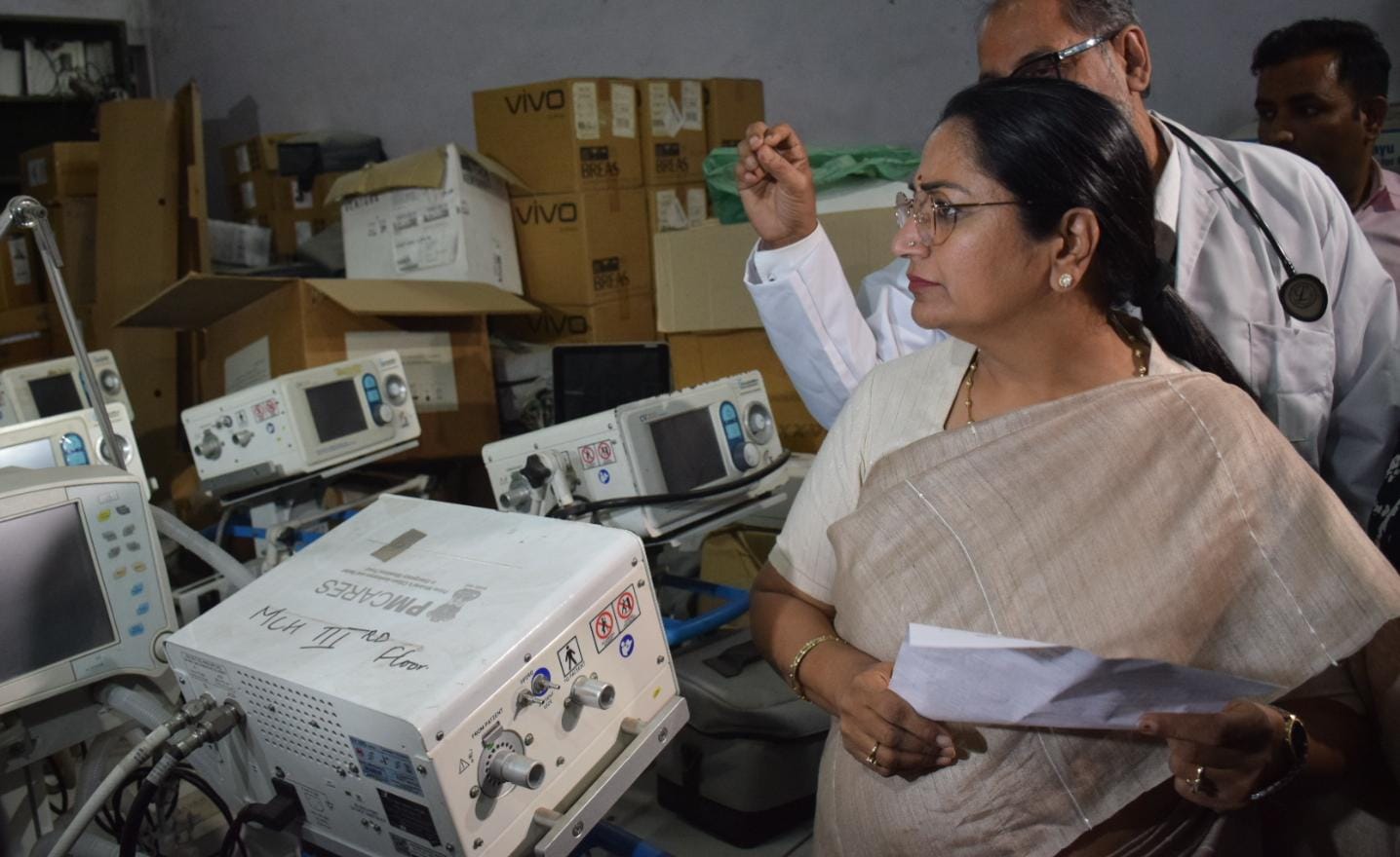 मुख्यमंत्री सबसे पहले अस्पताल के स्टोर रूम में पहुंचीं, जहां कोरोना काल में खरीदे गए वेंटिलेटर समेत कई उपकरण रखे हुए थे। जिनका अस्पताल में इस्तेमाल नहीं हो रहा था।
