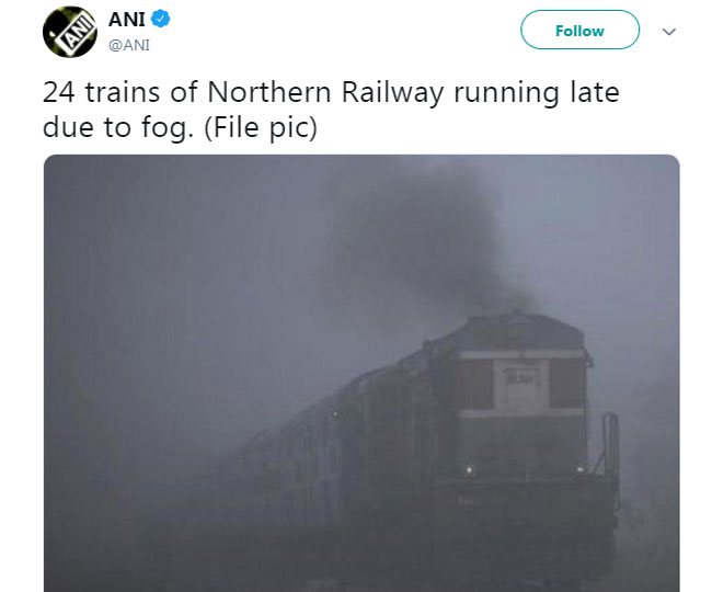 ठंड और कोहरे का प्रकोप बढ़ने से यात्रियों की मुसीबतें भी बढ़ गई हैं। रेल परिचालन बुरी तरह से बाधित है। शताब्दी व राजधानी जैसी तेज गति वाली ट्रेनों की चाल भी धीमी हो गई है, जिससे यात्री कंपकंपाती सर्दी में प्लेटफॉर्म पर समय बिताने को मजबूर हो रहे हैं। समाचार एजेंसी के मुताबिक, मंगलवार को दिल्ली आने-जाने वाली 24 ट्रेनें देरी से चल रही हैं, जबकि कई के समय में बदलाव और कुछ को रद कर दिया है।