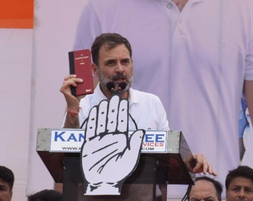 जागरण संवाददाता, नई दिल्ली। कांग्रेस के वरिष्ठ नेता राहुल गांधी ने आज गुरुवार को उत्तर-पूर्वी दिल्ली में एक जनसभा को संबोधित किया। इस दौरान कांग्रेस नेता ने कहा, "इस चुनाव में लड़ाई संविधान की है। यह जो संविधान है ये सिर्फ एक किताब नहीं है। इसमें हिंदुस्तान की हजारों साल पुरानी विचारधारा व सोच है। अंबेडकर, गांधी, नेहरू और लोगों ने इस संविधान को बनाया। इसमें सोच पुरानी है। सोच बुद्ध भगवान की है। नारायण गुरु जी की है। गांधी जी की है फूले जी की है। गांधी जी अंबेडकर जी की सोच से यह संविधान बना है।"