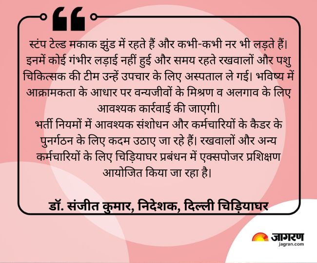 स्टंप टेल्ड मकाक झुंड में रहते हैं और कभी-कभी नर भी लड़ते हैं। इनमें कोई गंभीर लड़ाई नहीं हुई और समय रहते रखवालों और पशु चिकित्सक की टीम उन्हें उपचार के लिए अस्पताल ले गई। भविष्य में आक्रामकता के आधार पर वन्यजीवों के मिश्रण व अलगाव के लिए आवश्यक कार्रवाई की जाएगी।