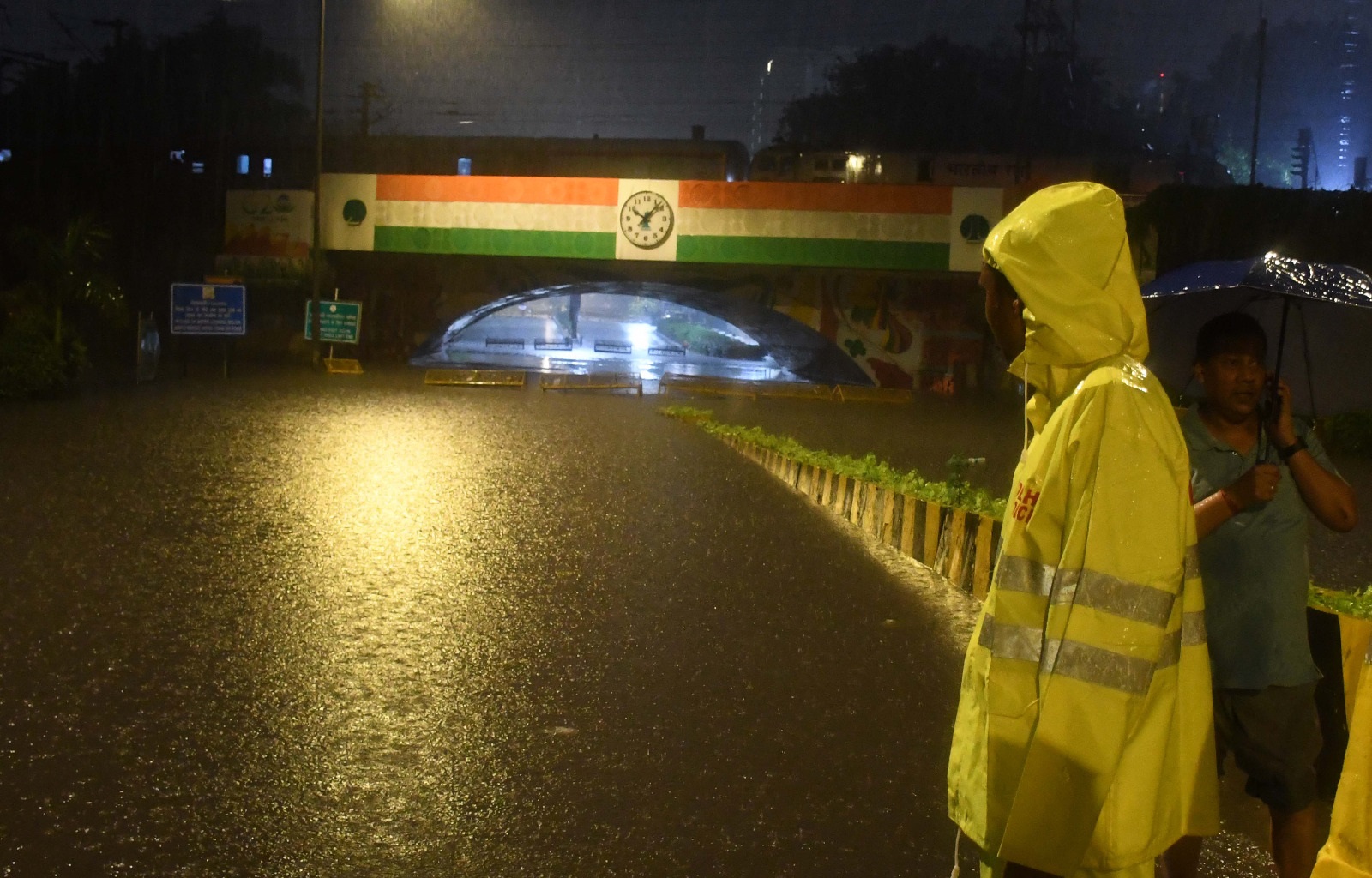 वर्षा के कारण मिंटो ब्रिज के नीचे लबालब भरा पानी, जिससे यातायात को रोक दिया गया।