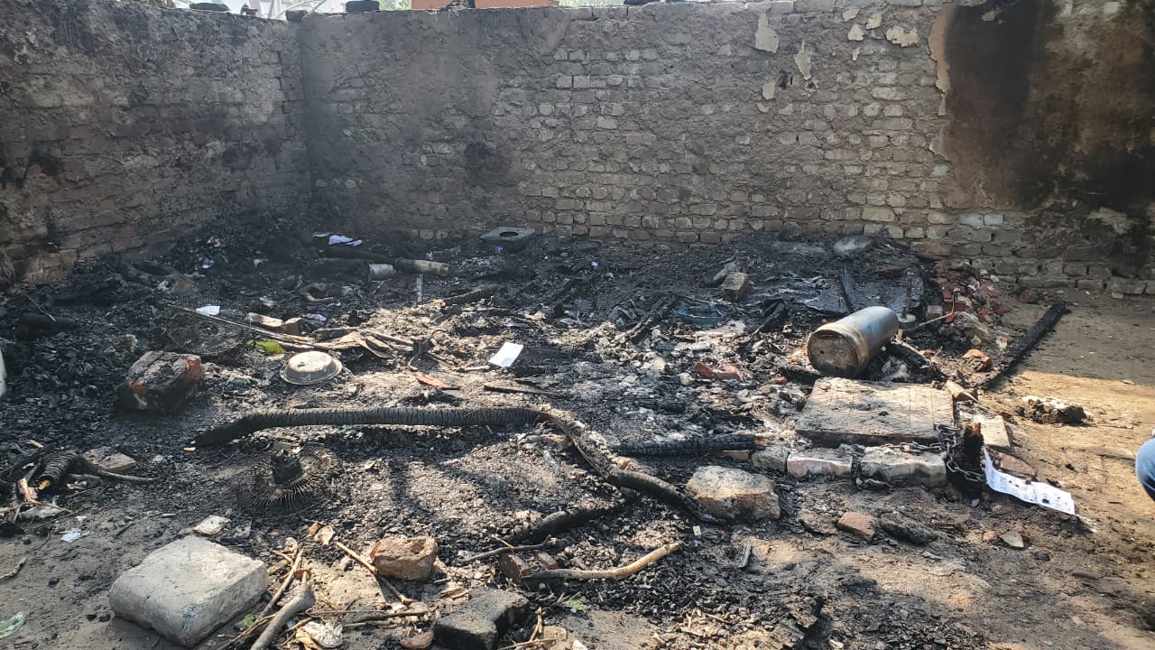 आग से झुग्गी में रखा सिलेंडर भी फटा