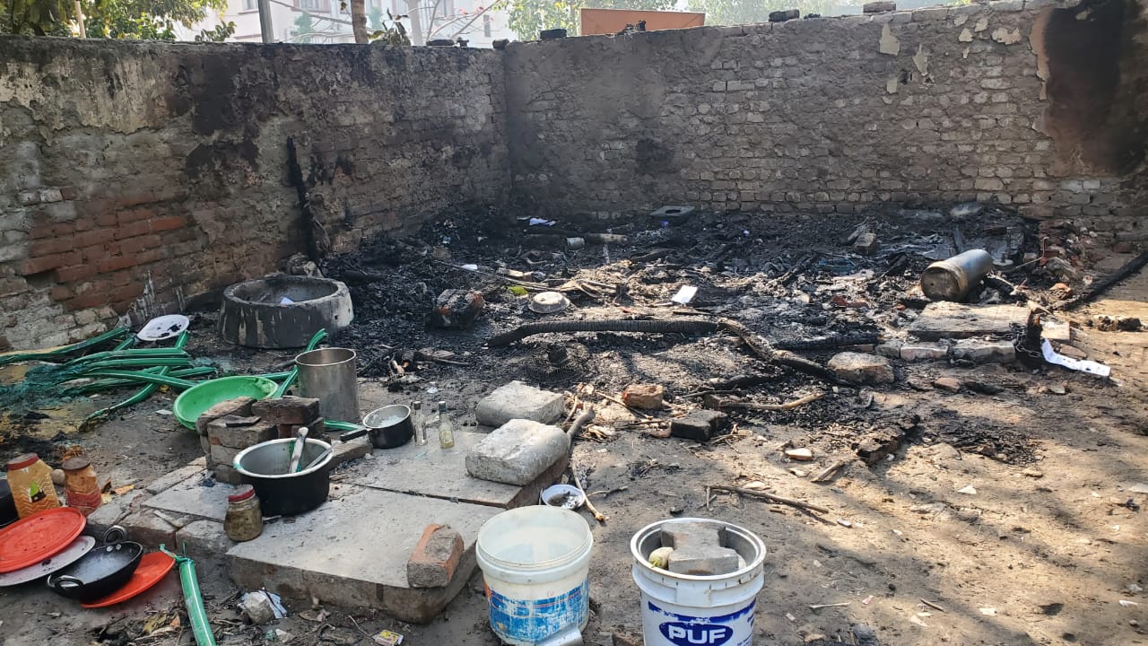 नितिन ने बताया कि रात दो बजे धुएं से दम घुटने से उसकी आंख खुली तो देखा डिबिया से लकड़ी के प्लाईबोर्ड से बनाई दीवार में आग लगी हुई है। उसने शोर मचाया तो श्याम सिंह की आंख खुल गई। इनकी झुग्गी के बराबर में रोटरी क्लब का भवन है। जिसकी चार दीवारी पांच फीट ऊंची है।