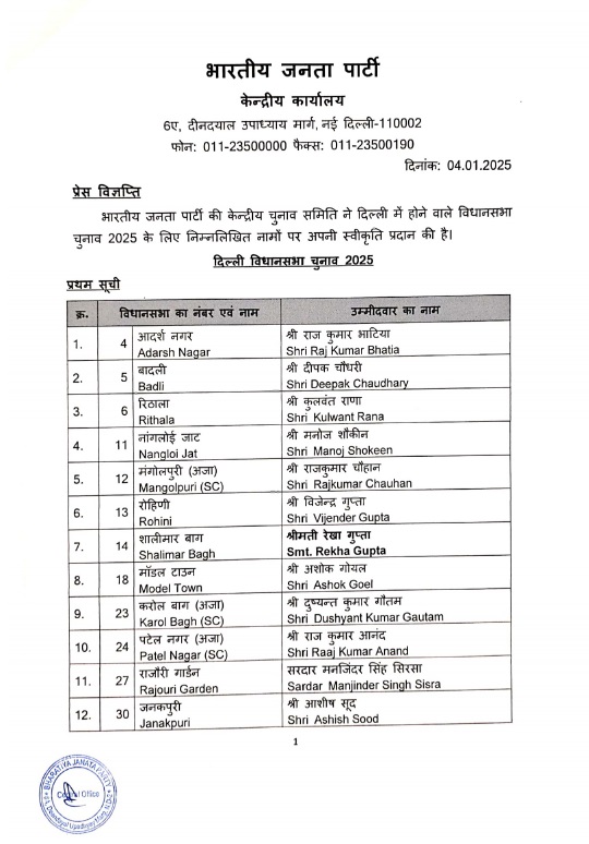 भाजपा ने जारी की एक लिस्ट, बाकी सूची का इंतजार